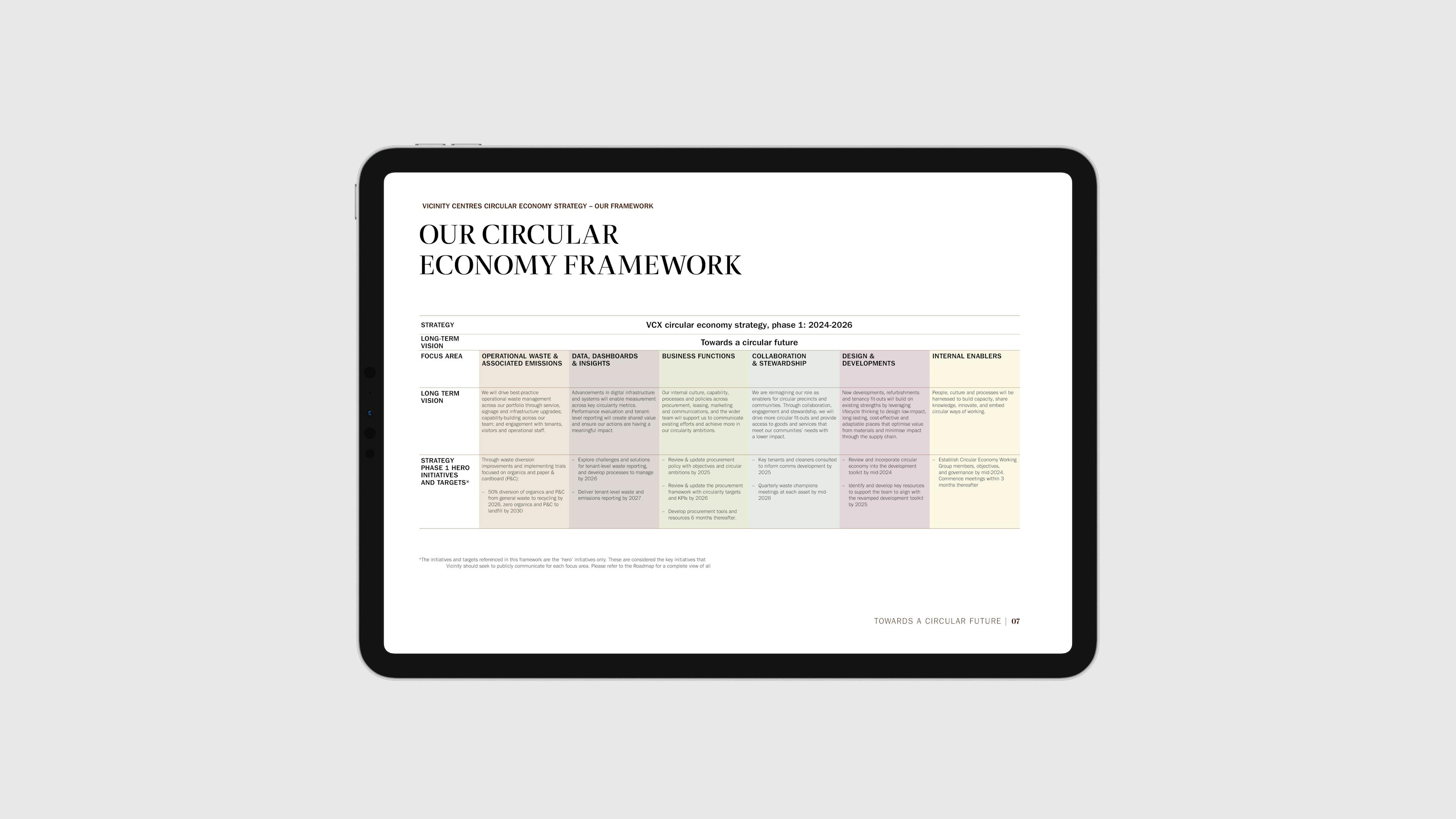 The strategy builds a pragmatic approach to tackle improvements to Vicinity Centre’s centre operations in the short term while establishing the foundations for future circular initiatives. It provides clarity on the ambition, goals, and priority areas for impact.