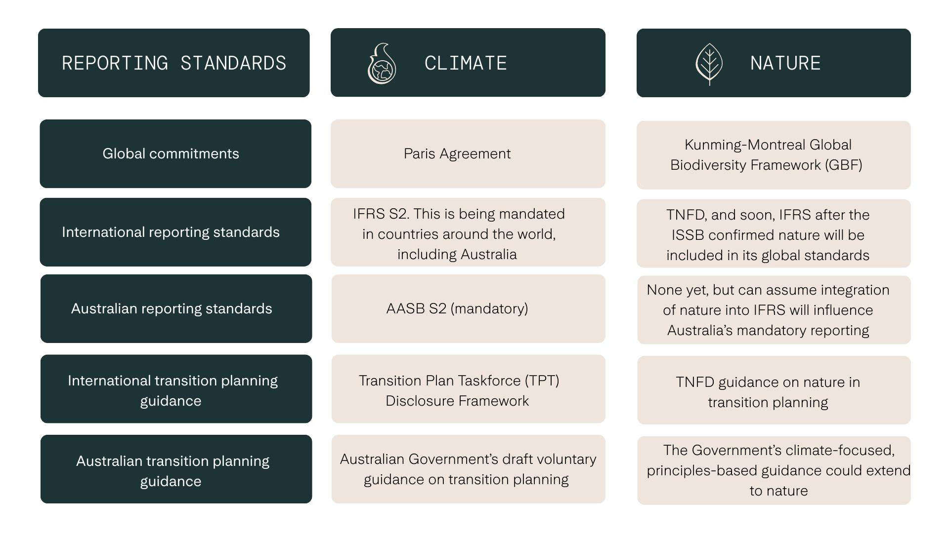 Like AASB S2, TPT guidance and the LEAP framework, this guidance can be used as an evidence based and credible tool to help organisations respond to the changes already happening to our economy and the natural world.